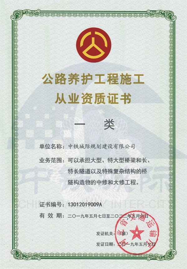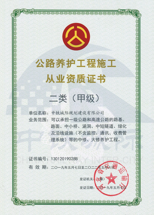 • 公路養(yǎng)護(hù)工程施工一類資質(zhì)