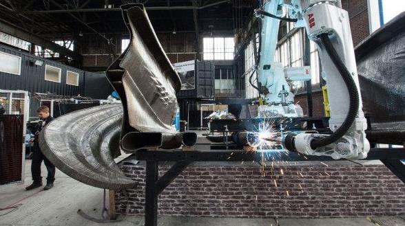 對他們來說,打印大塊的東西是一個巨大的挑戰(zhàn)。你可能會認(rèn)為這是一個硬件問題,制造更好的機(jī)器人就能解決了。但實(shí)際上更多的是軟件方面的問題。一直以來,他們的想法都是使用現(xiàn)成的工業(yè)機(jī)器人,這樣客戶就可以直接訂購機(jī)器人,然后使用MX3D的軟件打印出他們喜歡的任何東西。讓這些機(jī)器人焊接具有高性能部件是很復(fù)雜的。