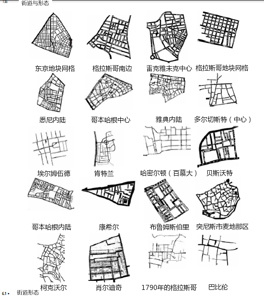 另一些分類法模式側重于城市街道的形態(tài)學,馬歇爾在《街道與形態(tài)》里對此有詳細論述: