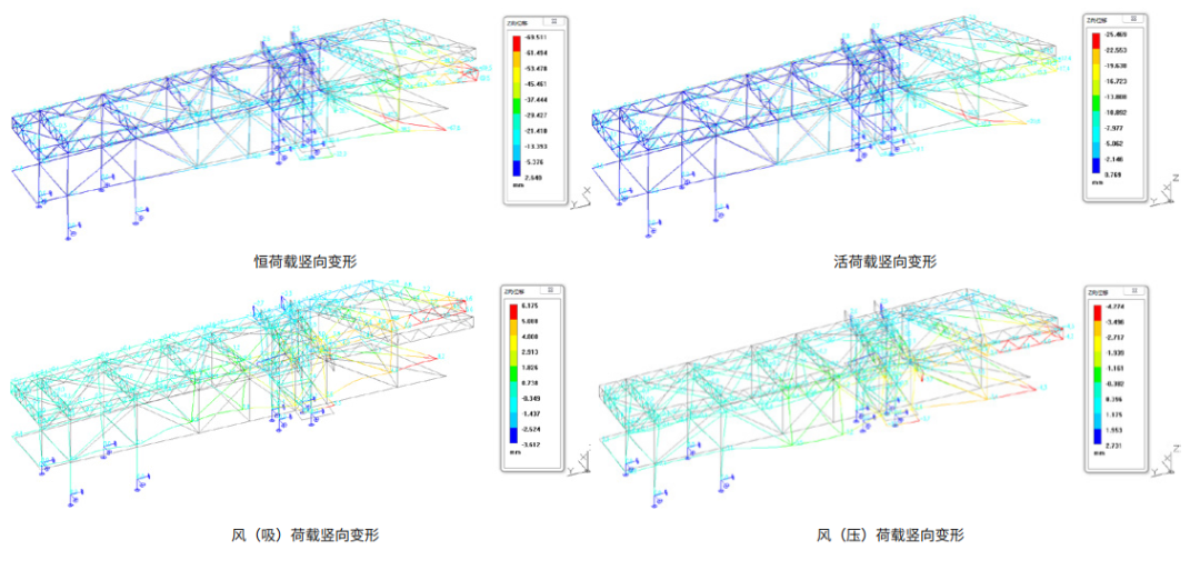 大懸梁和受力支點(diǎn)偏心為結(jié)構(gòu)特點(diǎn),以風(fēng)荷載、豎向荷載控制為主,主梁采用鋼結(jié)構(gòu)框架,經(jīng)分析論證,建筑物的抗風(fēng)能力能夠防范 12 級以上的臺風(fēng)。