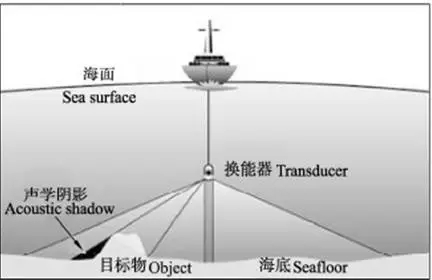 側(cè)掃聲納是利用專用的探頭發(fā)射聲納信號(hào)。聲納探頭發(fā)出的信號(hào)呈扇形向下傳播,扇形在水平角方向?yàn)?.6°~1.9°,而在垂直角方向?yàn)?2°,當(dāng)聲納信號(hào)到達(dá)江底時(shí),就會(huì)產(chǎn)生反射和散射。接收器接收來自江底的返回聲納,儀器設(shè)備根據(jù)接收到的聲納信號(hào)的時(shí)間及角度,經(jīng)過計(jì)算機(jī)處理就可以描繪出該扇形區(qū)域江底的相對(duì)深度變化,從而得到江底的地貌起伏情況和存在江底(海底)的沉船及其它近表面的物體等的具體位置、形態(tài)和尺寸。