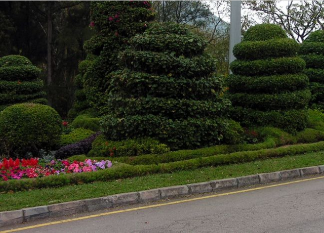 分隔帶綠化的主要功能是按不同的行駛方向分隔車道,防止車燈眩光干擾,減輕對(duì)開車輛接近時(shí)司機(jī)心理上的危險(xiǎn)感,或因行車而引起的精神疲勞,引導(dǎo)視線和改善環(huán)境。中央分隔帶的設(shè)計(jì),在增強(qiáng)交通功能并能夠持久穩(wěn)定方面,要求考慮通過常綠灌木實(shí)現(xiàn),選擇時(shí)應(yīng)重點(diǎn)考慮選用耐尾氣污染、生長(zhǎng)健壯、慢生和耐修剪的灌木品種,一般可選用石楠、金葉女貞、紅花繼木、蜀檜柏、冬青等。在一些地段的分隔帶設(shè)計(jì)中,還可以組團(tuán)式規(guī)則種植棕櫚、櫻花、西府海棠等特色小喬木來體現(xiàn)植物景觀的差異性。