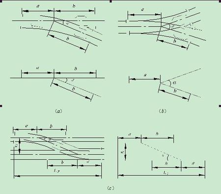 1.到發(fā)線與到發(fā)線連接應(yīng)采用側(cè)向允許通過速度為80KM/H的18號單開道岔。全部或絕大多數(shù)列車均停車的個(gè)別車站以及改、擴(kuò)建大型站特別困難條件下,可采用12號道岔。