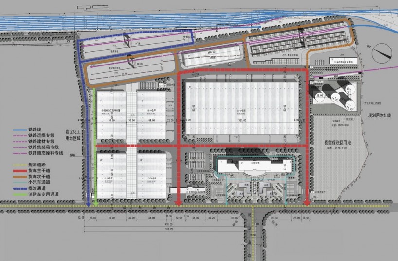 嘉寶物流基地的建設直接滿足了蘭溪經濟發(fā)展的需求。隨著我國高速鐵路的快速發(fā)展和既有線運能的釋放,鐵路貨運能力得到了保障,預計到2020年,蘭溪物流運量將超過3000萬噸。依據(jù)上海鐵路局制定的《上海鐵路局2014-2020年物流發(fā)展規(guī)劃》,上海鐵路局管內180余個貨運站將按城市發(fā)展水平、路網條件以及貨運站規(guī)模等因素,構建“路網性物流中心——區(qū)域性物流中心——物流基地”三級鐵路物流網絡。未來五年,更多的鐵路物流中心建設被提上了日程,杭州,義烏,湖州,金華,建德等地都陸續(xù)開展了鐵路貨場搬遷或者改擴建工程;希望借助結構合理的綜合運輸體系和功能完備的口岸平臺推動鐵路貨場的升級轉型。因此浙江嘉寶物流基地的規(guī)劃策略及功能優(yōu)化也是為同類型的鐵路物流園建設提供了一些經驗上的探索。
