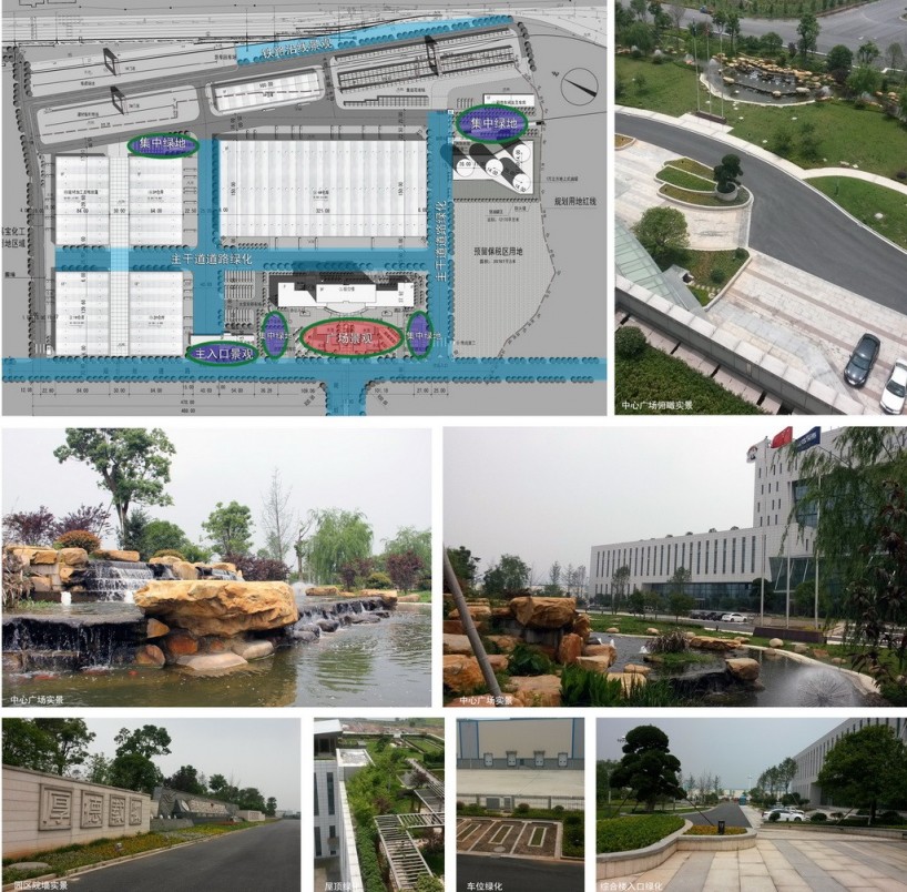面:重點打造綜合樓入口中心廣場的景觀,高達一萬多平米的集中園林綠化為物流園區(qū)提供了清新的綠肺,作為園區(qū)核心風貌景觀區(qū)與綜合樓相映成趣,提升了園區(qū)的整體景觀品質,也為園區(qū)物流人員提供了一個輕松交流、親近自然的休閑場所。除了中心廣場,我們還充分利用綜合樓的南北兩側裙房做了大面積的屋頂綠化,為五樓的辦公人員創(chuàng)建了舒心宜人的空中花園,兼具環(huán)保功能與景觀效益。在多層次的立體綠化園林襯托下,整個嘉寶物流基地顯得流光溢彩,生意盎然(圖17)。