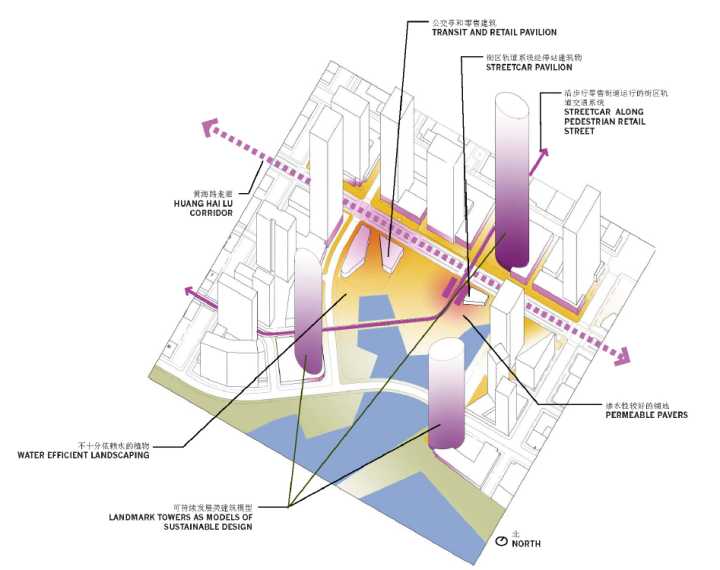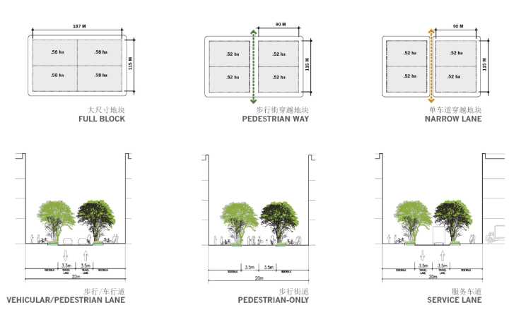 故事講的很特別,但是觀點并沒有什么新的,且不說中央前段時間提出的開放街區(qū),即便在很久很久以前,這在城市設計實踐領(lǐng)域便已著手實踐(下圖來自[SOM][2008]武漢王家墩商務核心區(qū)設計規(guī)劃方案)