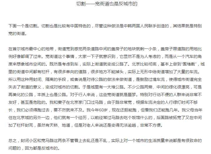 (截圖自公眾號軟文一位建筑師對當前城市設計的批判)