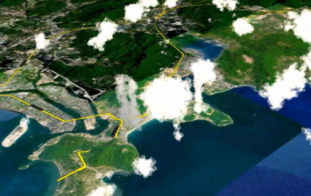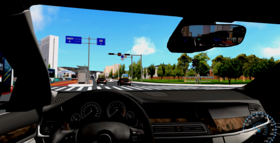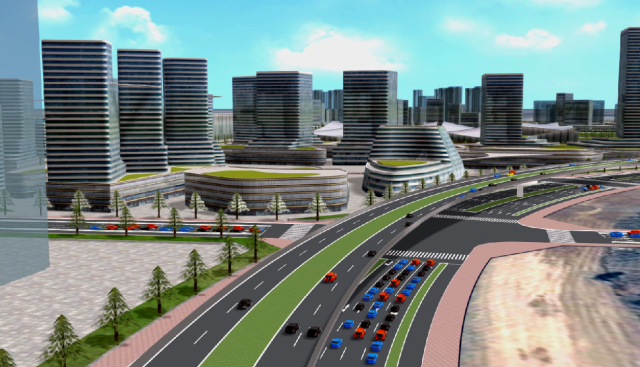 最后,在3DScene中加載3DRoad中導(dǎo)出的三維場(chǎng)景數(shù)據(jù)包,加載雨、雪、水面、云、光照等渲染特效以及仿真車流,以第一、第三人稱視角進(jìn)行場(chǎng)景瀏覽,也可以將場(chǎng)景輸出為圖片和視頻。