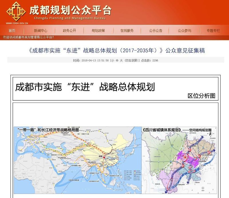 文件還顯示,2017年5月以來,成都市有關(guān)部門同步組織開展了《成都市實(shí)施 “ 東進(jìn) ” 總體戰(zhàn)略研究》和《成都市實(shí)施 “ 東進(jìn) ” 戰(zhàn)略總體規(guī)劃》兩項工作,近一年的時間里,結(jié)合多次會議意見及相關(guān)區(qū)(市)縣、市級部門書面反饋意見,經(jīng)過多輪修改完善,才形成今天的最新規(guī)劃藍(lán)圖。