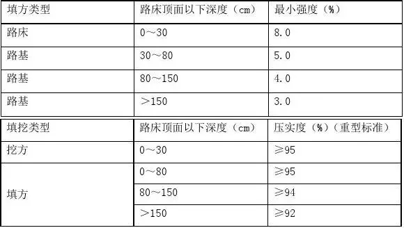 表1 路基填料強(qiáng)度(CBR)的最小值