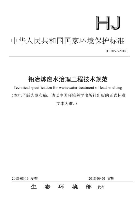 為貫徹《中華人民共和國環(huán)境保護法》、《中華人民共和國水污染防治法》等法律法規(guī),防治環(huán)境污染,改善生態(tài)環(huán)境質(zhì)量,規(guī)范鉛冶煉廢水治理工程的建設(shè)與運行管理,制定本標(biāo)準(zhǔn)。本標(biāo)準(zhǔn)規(guī)定了鉛冶煉廢水治理工程的設(shè)計、施工、驗收、運行和維護等技術(shù)要求。本標(biāo)準(zhǔn)為指導(dǎo)性標(biāo)準(zhǔn)。本標(biāo)準(zhǔn)為首次發(fā)布。