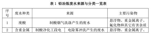 鉛冶煉廢水來源與分類見表1。