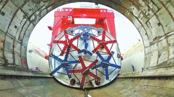 針對該項目的地質(zhì)條件和施工特點,中鐵裝備專門為蒙華鐵路白城隧道項目量身定制了世界首臺大斷面馬蹄形盾構(gòu),并于2018年1月26日順利貫通長達(dá)3056米的黃土隧道盾構(gòu)施工段,為同類型地質(zhì)條件隧道建設(shè)提供了范例,在我國鐵路隧道施工技術(shù)與裝備發(fā)展史上具有里程碑意義。該馬蹄形盾構(gòu)刀盤高10.95米、寬11.9米,它不僅是斷面的變化,更是工法、技術(shù)上的革新,能夠最大程度提高空間利用率,較圓形截面減少20%—30%的開挖面積,是全球首創(chuàng)的隧道開挖模式。