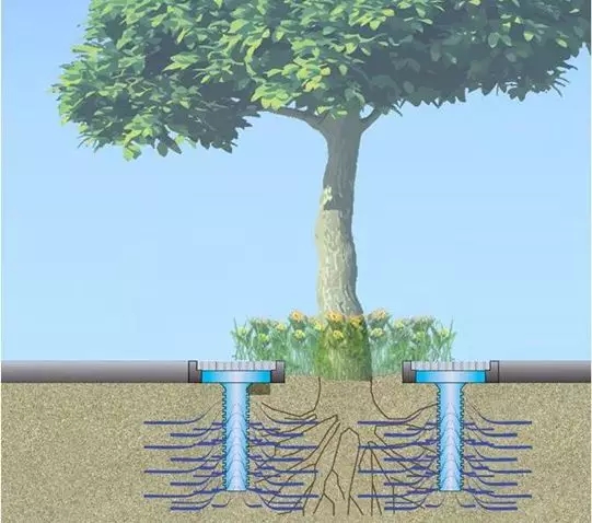 樹池的標高一般比路面低一些,用以收集、初步過濾雨水徑流。就行道樹而言,一系列連貫的樹池可以被設(shè)計成潛在的收水裝置,最大限度地發(fā)揮收集、過濾雨水徑流的作用。