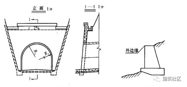 彎擋土墻在立面圖中的長度,應(yīng)按擋土墻頂面外邊緣線的展開長度標(biāo)注(圖2-67)。