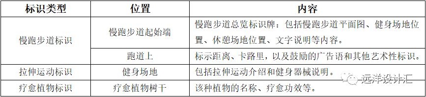表3-3 居住區(qū)慢跑步道標(biāo)識(shí)內(nèi)容