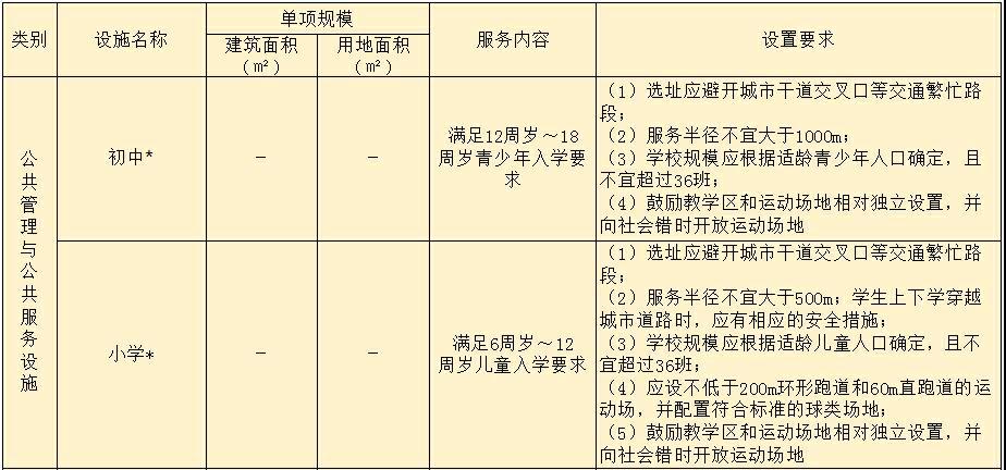 注:加*的配套設(shè)施,其建筑面積與用地面積規(guī)模應(yīng)滿足國家相關(guān)規(guī)劃標(biāo)準(zhǔn)有關(guān)規(guī)定。