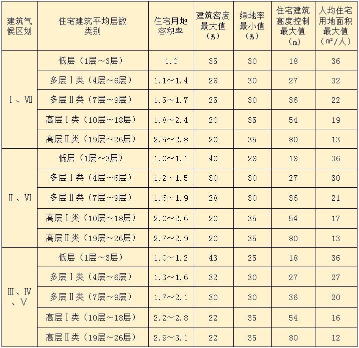 4.0.1 各級生活圈居住區(qū)用地應(yīng)合理配置、適度開發(fā),其控制指標(biāo)應(yīng)符合下列規(guī)定: