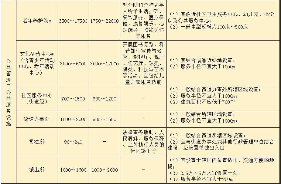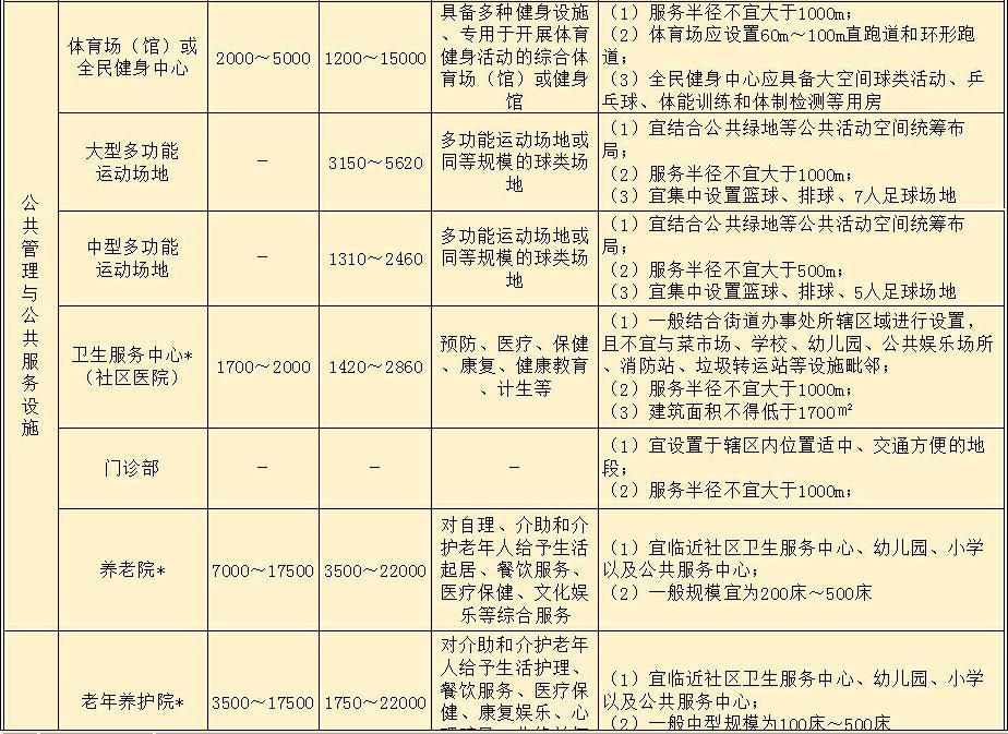 注:1 加*的配套設(shè)施,其建筑面積與用地面積規(guī)模應(yīng)滿足國家相關(guān)規(guī)劃及標(biāo)準(zhǔn)規(guī)范的有關(guān)規(guī)定;
