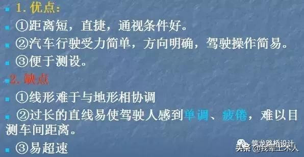 在平面線型設計中,汽車形式軌跡的特性,道路平面線型的要素以及直線的特點與運用等等都是我們需要掌握的特點,如何設計出一條合理且優(yōu)秀的線型,相信看完今天的內容大家都會有自己的答案。