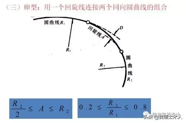 回旋線的半徑減小得最快,而三次拋物線則減小的最慢。從保證汽車平順過渡的角度看,三種曲線都可以作為緩和曲線。