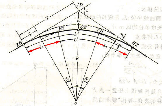 一般由直線、緩和曲線、圓曲線構(gòu)成。什么叫緩和曲線呢?是一個(gè)曲率連續(xù)變化的曲線,此例中是連接直線與圓曲線之間的過(guò)渡曲線。這樣就能逐漸入彎和出彎道啦?!綥s段就是緩和曲線段】