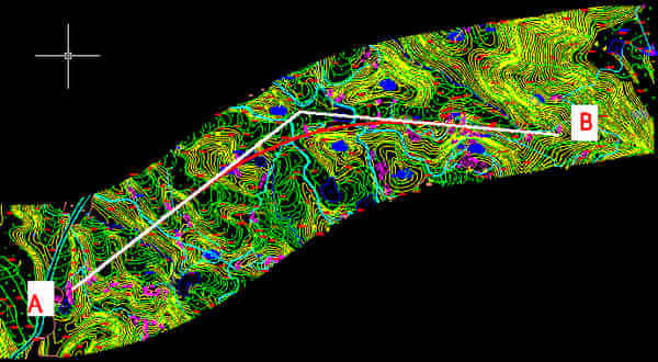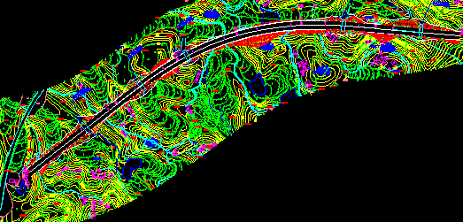 平面縱面都確定了,那么道路中線的空間位置就確定了。那么把左右50m左右的高程都讀出來(lái)。那么一條路就基本呈現(xiàn)出來(lái)。