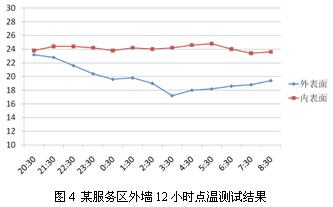 5、服務(wù)區(qū)建筑設(shè)計(jì)技術(shù)層面存在的問題,就是基本上未考慮“四節(jié)一環(huán)保”的要求,因此根本上達(dá)不到國家《公共建筑節(jié)能設(shè)計(jì)標(biāo)準(zhǔn)》規(guī)定節(jié)能50%的要求,這從我們在實(shí)地調(diào)研中對(duì)幾個(gè)服務(wù)區(qū)綜合樓的熱工測試結(jié)果(如圖4所示)可以看得出來。