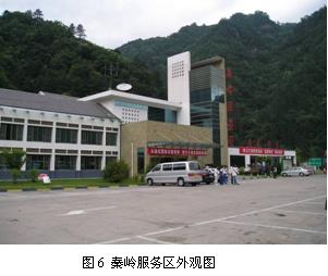 受占地空間的限制,服務(wù)區(qū)內(nèi)會(huì)最大程度地增加建筑面積和停車場面積,如服務(wù)區(qū)規(guī)劃設(shè)計(jì)充分利用原地貌、地物資源,結(jié)合周邊地理環(huán)境進(jìn)行設(shè)計(jì),這實(shí)際上將是對(duì)自然環(huán)境的開發(fā)和保護(hù),如圖6所示西漢高速公路的秦嶺服務(wù)區(qū)即為一例。