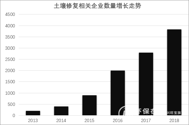 土壤修復(fù)相關(guān)企業(yè)數(shù)量增長(zhǎng)走勢(shì)圖。資料來(lái)源:公開(kāi)數(shù)據(jù)整理