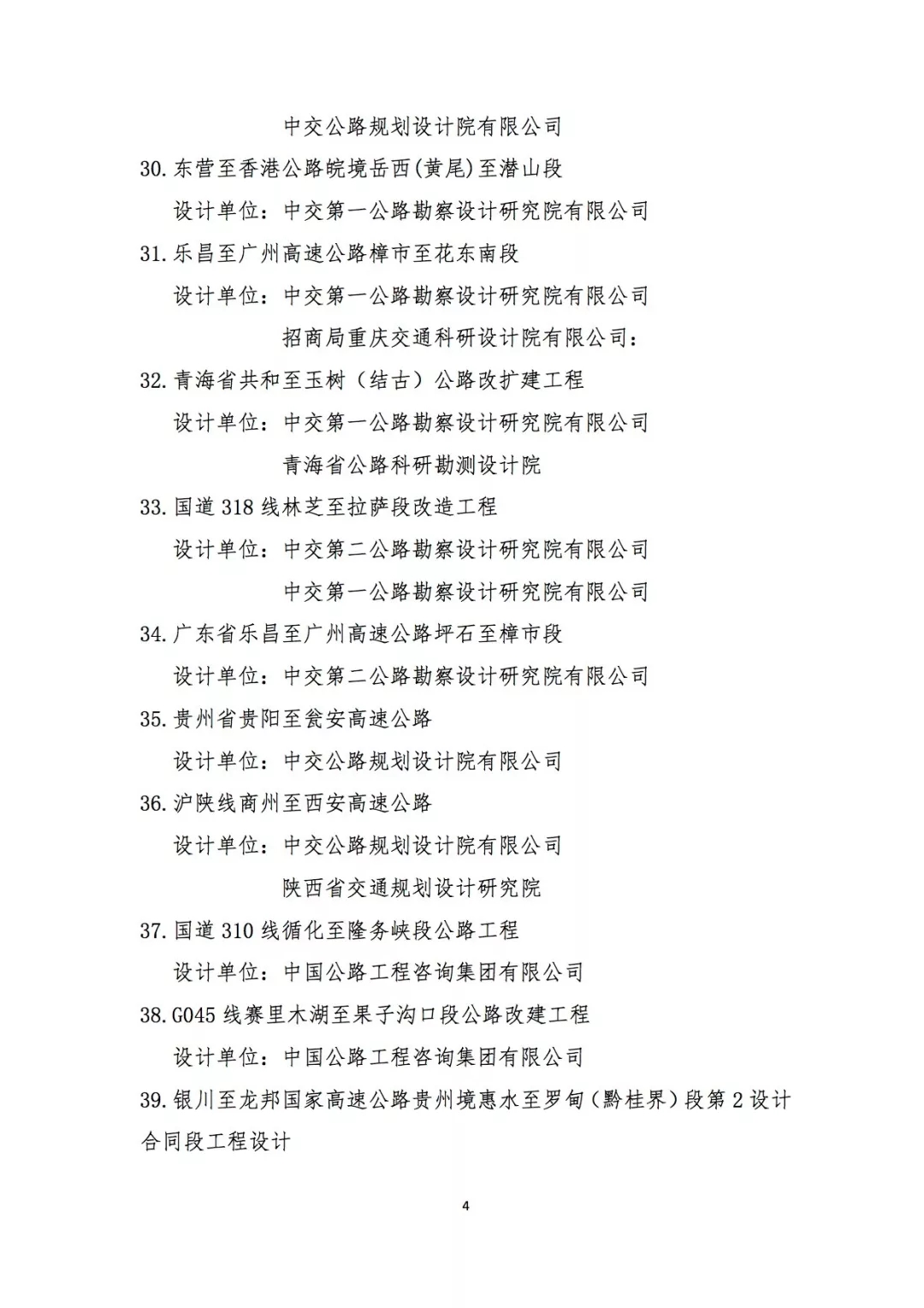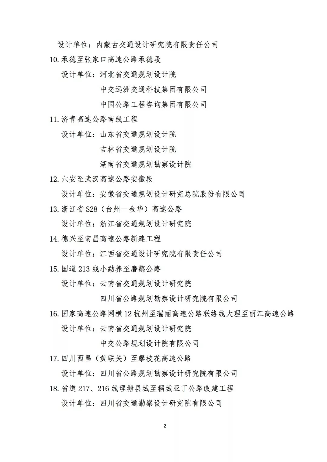 本次獲獎的62個項目中,公路工程39項,橋梁工程16項,隧道工程7項。其中中交公路規(guī)劃設(shè)計院有限公司參與的14個項目獲獎。