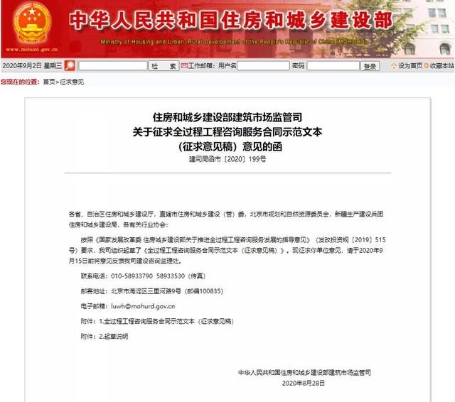 《全過(guò)程工程咨詢(xún)服務(wù)合同示范文本(征求意見(jiàn)稿)》出爐