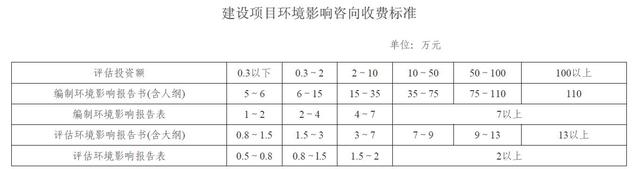 建設(shè)項(xiàng)目環(huán)境影響咨向收費(fèi)標(biāo)準(zhǔn)