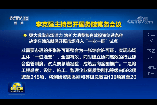 國(guó)務(wù)院總理李克強(qiáng)11月11日主持召開(kāi)國(guó)務(wù)院常務(wù)會(huì)議,聽(tīng)取國(guó)務(wù)院第七次大督查情況匯報(bào),確保政策落實(shí),更好發(fā)揮促進(jìn)經(jīng)濟(jì)穩(wěn)定恢復(fù)的重要作用;決定在浦東新區(qū)開(kāi)展市場(chǎng)準(zhǔn)入“一業(yè)一證”試點(diǎn),在全國(guó)大幅壓減建設(shè)工程企業(yè)和測(cè)繪資質(zhì)并加強(qiáng)監(jiān)管,更大激發(fā)市場(chǎng)活力,為擴(kuò)大消費(fèi)和有效投資創(chuàng)造條件。