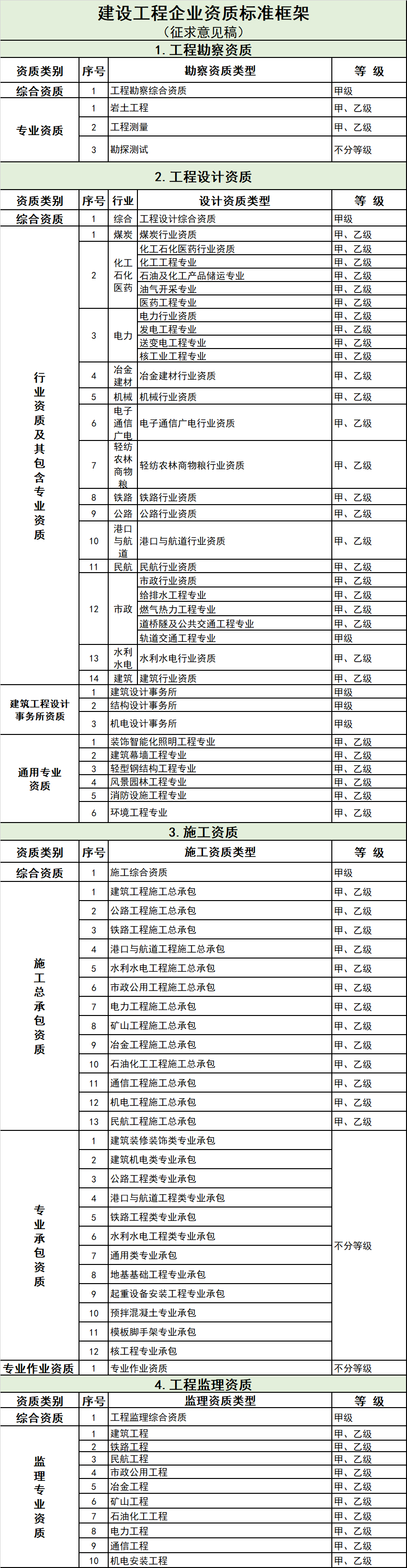 2、建設(shè)工程企業(yè)資質(zhì)標(biāo)準(zhǔn)框架(征求意見(jiàn)稿)