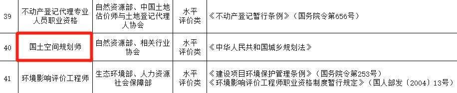 * 注2:原注冊城鄉(xiāng)規(guī)劃師調整為水平評價類,更名為“國土空間規(guī)劃師”;原注冊設備監(jiān)理師調整為水平評價類,更名為“設備監(jiān)理師”;原土地登記代理專業(yè)人員職業(yè)資格更名為“不動產登記代理專業(yè)人員職業(yè)資格”;原專業(yè)代理人更名為“專業(yè)代理師”。