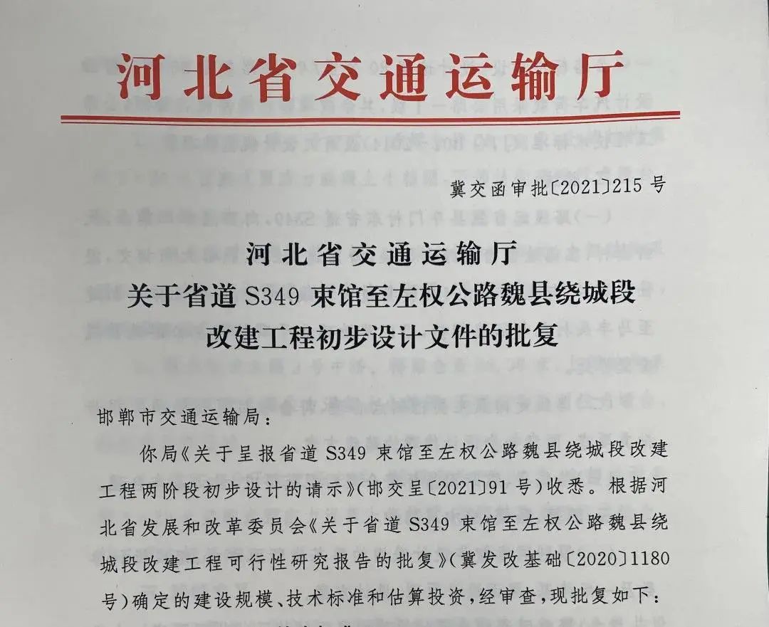 邯鄲S349束左公路魏縣段(新南環(huán))初步設計獲省批