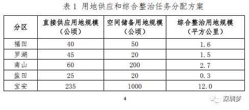 2.規(guī)劃期內(nèi),全市城市更新和土地整備實施規(guī)模不少于95平方公里。其中,完成綜合整治用地不少于45平方公里,完成直接供應(yīng)用地10平方公里和空間儲備用地40平方公里。