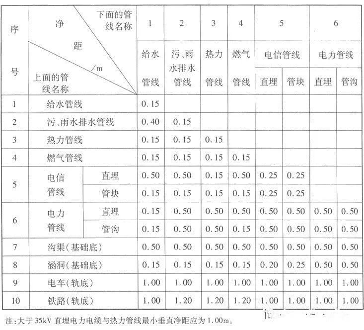 1. 各種工程管線不應在垂直方向重疊直埋敷設