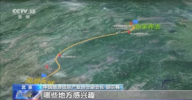 中國(guó)地理信息產(chǎn)業(yè)協(xié)會(huì)副會(huì)長(zhǎng) 邵宗有:比如我們要去張家界旅游,通過它的高空數(shù)據(jù),就可以大致地瀏覽一下整個(gè)張家界景區(qū),哪些地方感興趣,你可以設(shè)計(jì)出旅游的路線。