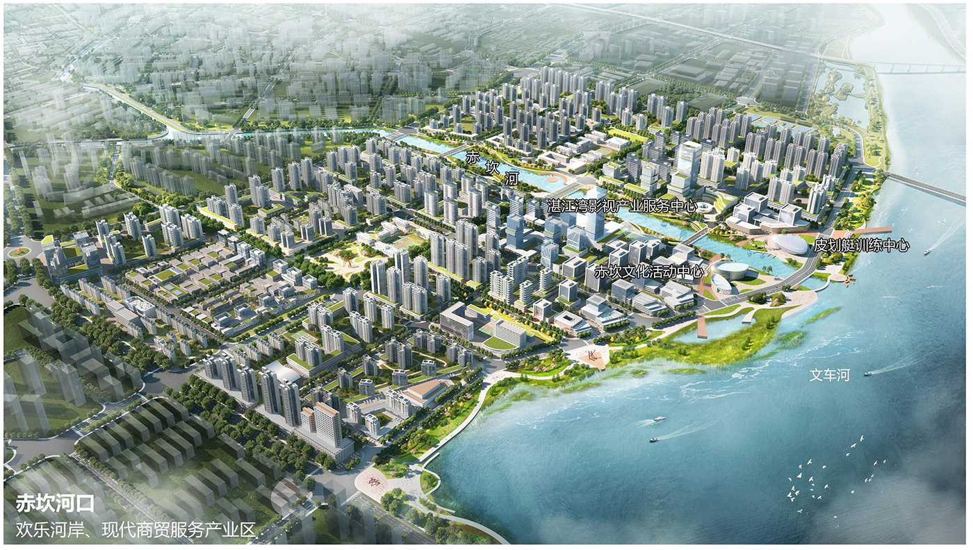 沿文車河、赤坎河河岸布置三大明星項(xiàng)目:打造湛江灣影視產(chǎn)業(yè)服務(wù)中心,擴(kuò)大赤坎影視文化影響力;擴(kuò)建湛江賽艇皮劃艇基地,打造1. 6萬㎡省級皮劃艇訓(xùn)練中心,承接賽事的訓(xùn)練和舉辦;濱河建設(shè)2.5萬㎡區(qū)級文化活動(dòng)中心。