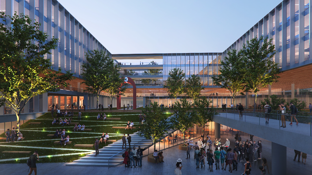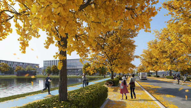 打造以學(xué)科貫通為核心的研究型校園,是北交大雄安校區(qū)規(guī)劃設(shè)計(jì)的重點(diǎn)。規(guī)劃方案設(shè)計(jì)了一條校園“學(xué)術(shù)中軸”,公共教學(xué)、實(shí)驗(yàn)、研究等功能一應(yīng)俱全,可承載三大一流學(xué)科群和兩大基礎(chǔ)學(xué)科建設(shè)。該校雄安校區(qū)還以交大校訓(xùn)和飲水思源的傳統(tǒng)為名,規(guī)劃了三大廣場(chǎng):思源、知行、天佑,打造了新明湖水系和24小時(shí)開放書院全時(shí)交流共享空間。