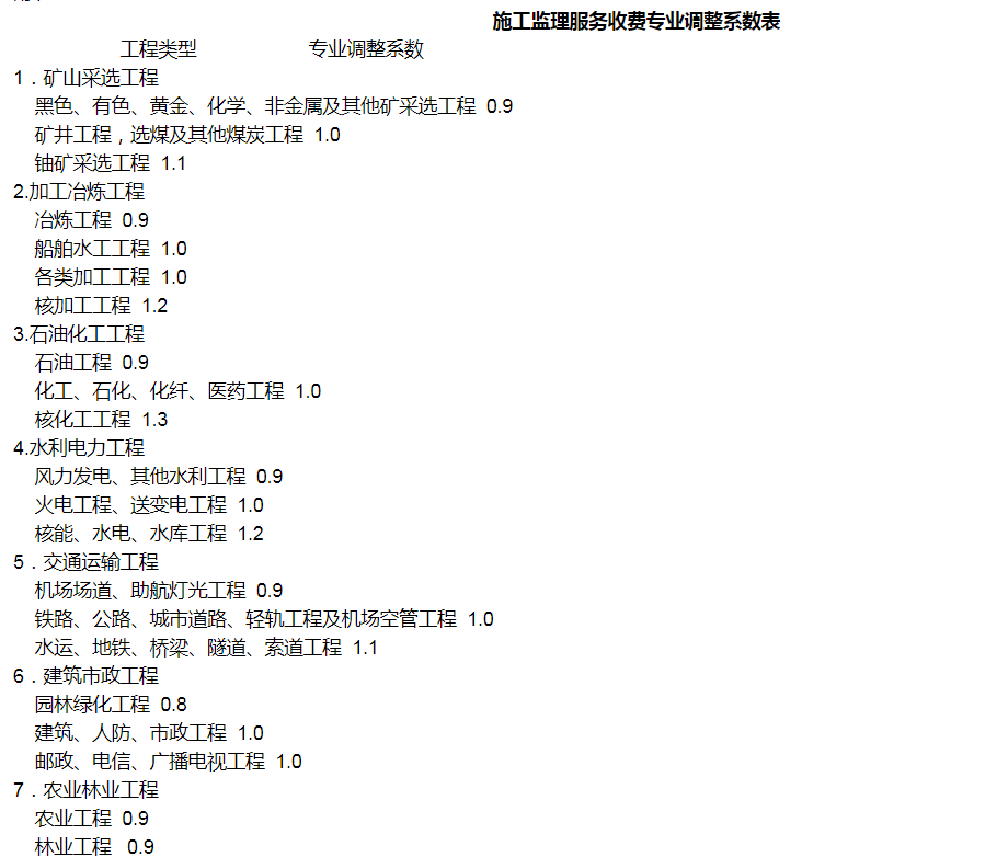 (2)施工監(jiān)理服務(wù)收費基準(zhǔn)價=施工監(jiān)理服務(wù)基價×專業(yè)調(diào)整系數(shù)×工程復(fù)雜程度調(diào)整系數(shù)×高程調(diào)整系數(shù)