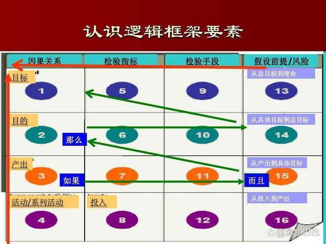 邏輯框架,說簡單點就是做項目的邏輯關(guān)系。我們做任何事情或者活動,都需要投入,如果投入活動,外部條件具備,那么就會有產(chǎn)出成果。如果有產(chǎn)出成果,那么在條件具備的情況下,那么就可以實現(xiàn)具體目標(biāo)或者目的。如果一個個具體目標(biāo)實現(xiàn)了,那么宏觀目標(biāo)就有可能實現(xiàn)了。