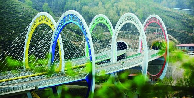 沿線(xiàn)地形復(fù)雜,施工場(chǎng)地受限,橋梁、隧道數(shù)量多,橋隧比達(dá)56%,局部路段橋隧比高達(dá)90%以上,其中松山特長(zhǎng)隧道長(zhǎng)9.2km,為華北地區(qū)最長(zhǎng)公路隧道。