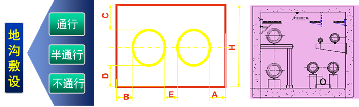 管溝敷設(shè)首選不通行管溝敷設(shè);穿越不允許開挖檢修的地段時(shí),采用通行管溝敷設(shè);通行管溝困難時(shí),采用半通行管溝敷設(shè)。