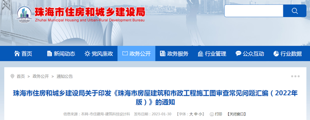 為提高我市施工圖設(shè)計(jì)及審查質(zhì)量,我局組織編制了《珠海市房屋建筑和市政工程施工圖審查常見問題匯編(2022年版)》,現(xiàn)予以印發(fā)。