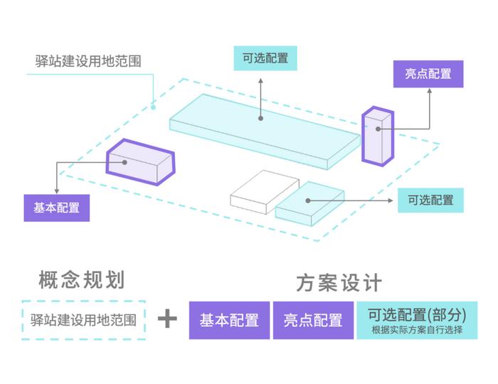 設(shè)計內(nèi)容包含整體驛站的概念規(guī)劃及基本配置、亮點(diǎn)配置、可選配置的方案設(shè)計。