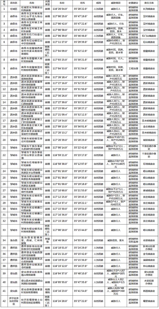 附件:濟寧市地質(zhì)災(zāi)害隱患點情況表