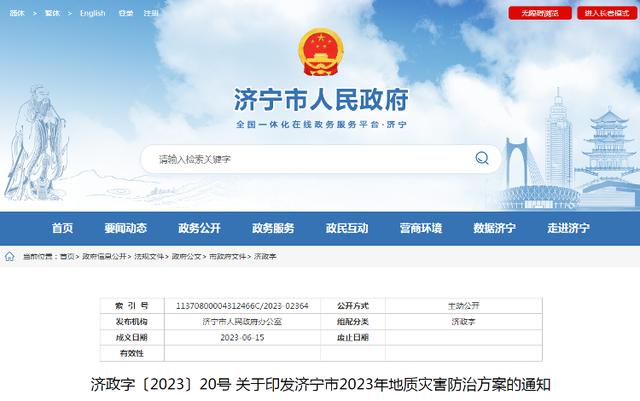 山東省濟寧市2023年地質(zhì)災(zāi)害防治方案公布